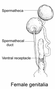Male genitalia, head chaetotaxy, and female genitalia of Clusia czernyi. © Owen Lonsdale