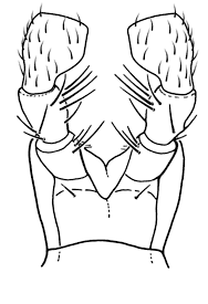- apical article of maxillary and labial palpi uniformly broadened from base to obliquely truncate apex, apical width slightly to 2 or more times greater than basal width, and apical margins broad and filled with patch of membranous (presumably sensory) tissue;
