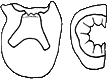 - Lateral wing margin expansions extend over saddle, meeting at midpoint as small downward deflected prominence.