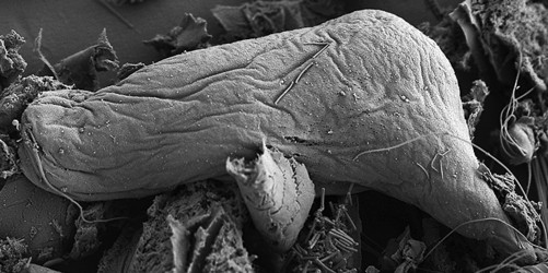 Comments | Saccinobaculus ambloaxostylus (Family Saccinobaculuidae) from the hindgut of the North American wood-roach Cryptocercus punctulatus. Specimen is approximately 80 microns in length. |