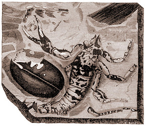 Jeram, A.J. 1994. Scorpions from the Viséan of East Kirkton, West Lothian, Scotland, with revision of the infraorder Mesoscorpionina. Tranactions of the Royal Society of Edinburgh: Earth Sciences, 84:283-299.