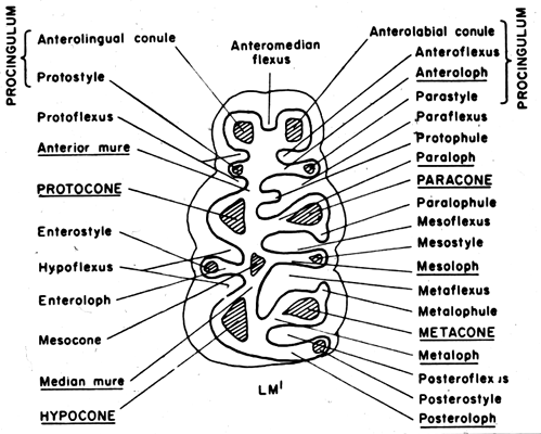 Figure 2. Generalized diagram of a sigmodontine molar, from Reig (1986).