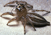 New World salticids that share a general body form (and a snappy jumping style) with the amycines. Most thiodinines have two pair of peculiar bulbous setae on the underside of the first leg, a double tibial apophysis, and many have a leg-carapace stridulatory mechanism (Maddison, 1987).References