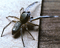 Dendryphantines characterized by unusual chelicerae with a very stout fang and a keel along the medial margin. Typically uniform colored, from gray or green to black, though T. harti is often mottled. Some species have a prominent V-shaped tuft of black hairs above anterior eye row. Some species, esp. T. formicaria, are reasonably antlike. Probably all specialize on eating ants. A closely related genus is Poultonella. The two share the unusual chelicerae.Title Illustrations