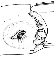 Figure. Side-view of head of O. meridiopacifica showing occipital folds. Drawing from Rancurel, 1970.