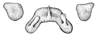 Figure. Oral view of the brachial and buccal crowns of T. pellucida from a subadult female, 140 mm GL. Drawings are from Voss, 1985, pp. 43 and 44