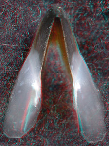 About anaglyph 3D: Photographs here are in 3D, using anaglyph techniques which combines two photographs one in red and the other in cyan (blue + green) color. To get the 3D effect, you must use glasses with red and cyan lenses (filters) over your regular glasses. The form of the beak is far easier to interpret in 3D and we strongly recommend to the viewer that the glasses be obtained (this is especially helpful when viewing enlarged images - i.e. click on the image). These beak photographs were made using Red and Cyan Anachrome Aviator Glasses (see: http://www.anachrome.com/glassbuy.htm or http://www.amazon.com) which cost under $10.00 (USD).