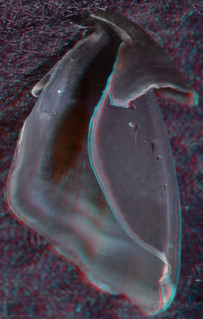 About anaglyph 3D: Photographs here are in 3D, using anaglyph techniques which combines two photographs one in red and the other in cyan (blue + green) color. To get the 3D effect, you must use glasses with red and cyan lenses (filters) over your regular glasses. The form of the beak is far easier to interpret in 3D and we strongly recommend to the viewer that the glasses be obtained (this is especially helpful when viewing enlarged images - i.e. click on the image). These beak photographs were made using Red and Cyan Anachrome Aviator Glasses (see: http://www.anachrome.com/glassbuy.htm or http://www.amazon.com) which cost under $10.00 (USD).