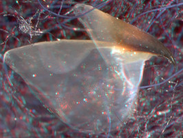 | M. atlantica, sex ?, 53 mm ML, 0.4 mm URL, near Azores. Photographs by R. Young. | M. atlantica, immature male, 72 mm ML, 1.0 mm URL, Gulf of Mexico. Photographs by R. Young. | M. atlantica, mature male, 127 mm ML, 1.7 mm URL, Gulf of Mexico. Photographs by R. Young. |