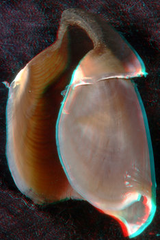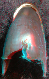 About anaglyph 3D: Photographs here are in 3D, using anaglyph techniques which combines two photographs one in red and the other in cyan (blue + green) color. To get the 3D effect, you must use glasses with red and cyan lenses (filters) over your regular glasses. The form of the beak is far easier to interpret in 3D and we strongly recommend to the viewer that the glasses be obtained (this is especially helpful when viewing enlarged images - i.e. click on the image). These beak photographs were made using Red and Cyan Anachrome Aviator Glasses (see: http://www.anachrome.com/glassbuy.htm or http://www.amazon.com) which cost under $10.00 (USD).