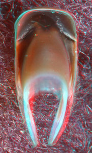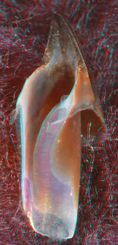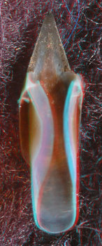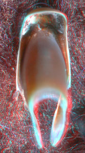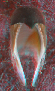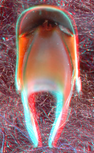 About anaglyph 3D: Photographs here are in 3D, using anaglyph techniques which combines two photographs one in red and the other in cyan (blue + green) color. To get the 3D effect, you must use glasses with red and cyan lenses (filters) over your regular glasses. The form of the beak is far easier to interpret in 3D and we strongly recommend to the viewer that the glasses be obtained (this is especially helpful when viewing enlarged images - i.e. click on the image). These beak photographs were made using Red and Cyan Anachrome Aviator Glasses (see: http://www.anachrome.com/glassbuy.htm or http://www.amazon.com) which cost under $10.00 (USD).