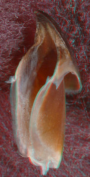 About anaglyph 3D: Photographs here are in 3D, using anaglyph techniques which combines two photographs one in red and the other in cyan (blue + green) color. To get the 3D effect, you must use glasses with red and cyan lenses (filters) over your regular glasses. The form of the beak is far easier to interpret in 3D and we strongly recommend to the viewer that the glasses be obtained (this is especially helpful when viewing enlarged images - i.e. click on the image). These beak photographs were made using Red and Cyan Anachrome Aviator Glasses (see: http://www.anachrome.com/glassbuy.htm or http://www.amazon.com) which cost under $10.00 (USD).