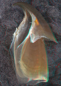 About anaglyph 3D: Photographs here are in 3D, using anaglyph techniques which combines two photographs one in red and the other in cyan (blue + green) color. To get the 3D effect, you must use glasses with red and cyan lenses (filters) over your regular glasses. The form of the beak is far easier to interpret in 3D and we strongly recommend to the viewer that the glasses be obtained (this is especially helpful when viewing enlarged images - i.e. click on the image). These beak photographs were made using Red and Cyan Anachrome Aviator Glasses (see: http://www.anachrome.com/glassbuy.htm or http://www.amazon.com) which cost under $10.00 (USD).