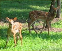 When a deer is startled, it may raise its tail to show the white underside, hence the name white tailed deer. When a mother raises her tail, it helps to allow her fawn to follow her.