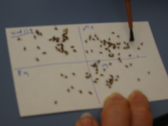 - Next all the flies fall asleep, and you dump the flies out on an index card (below).