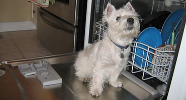 Tucker, a West Highland Terrier, up to no good. © 2006 Christine McDougall